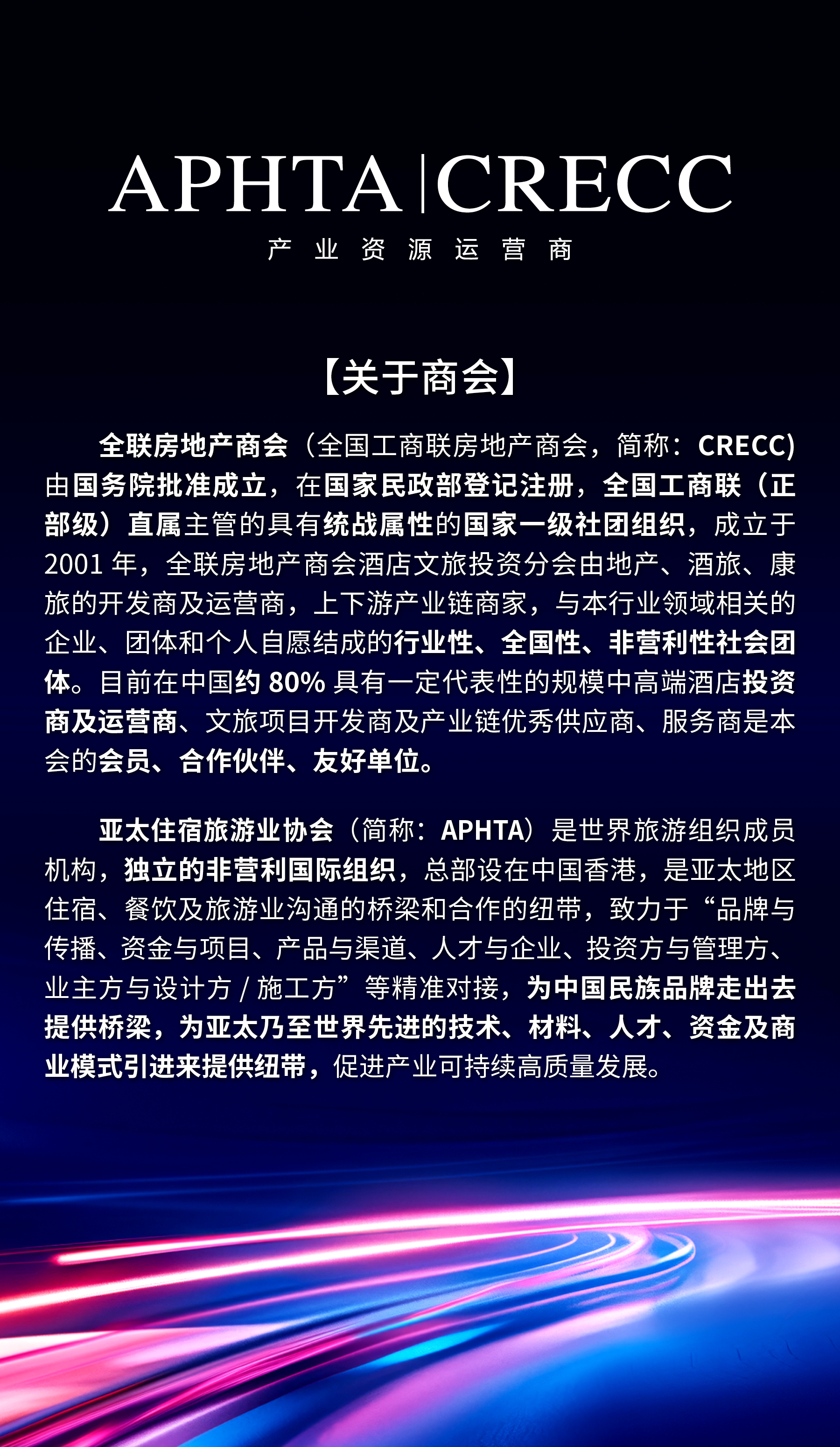 冼会长介绍:中国文旅生态链联盟(CCTA)成员要求为各系列、领域的龙头企业/品牌企业、发展前景好及成长性强的企业,从产业地产、住宿、餐饮及文旅项目的策划、定位、选址、调研、设计、建设、装修、筹备、开业、运维等产业链相关环节具有代表性的开发商、运营商(管理公司)、服务商、供应商。